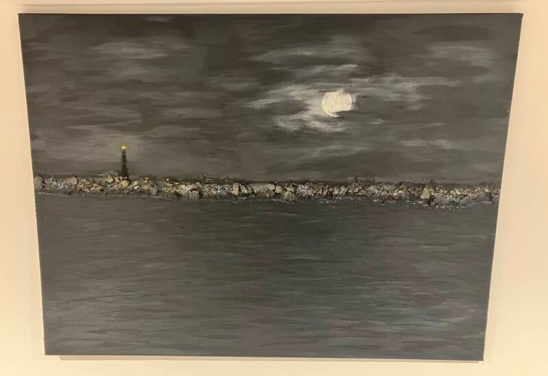 'What's Beyond'......fragmented Cornish stone set onto canvas, painted and varnished.