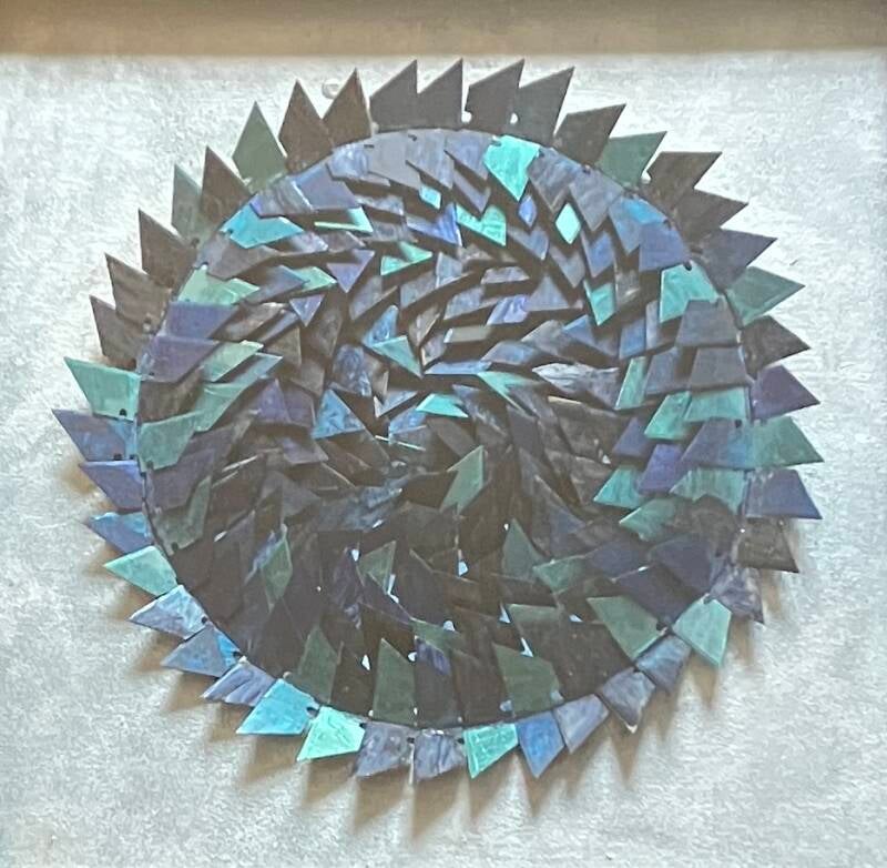 'Dark Moon'. Recycled and painted blades set into box frame. Frame size 55cm x 55cm